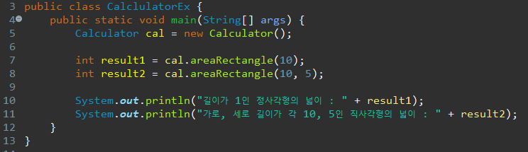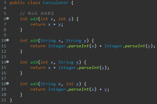메소드 오버로딩을 활용한 예시를 코드로 작성해 본 것이다.