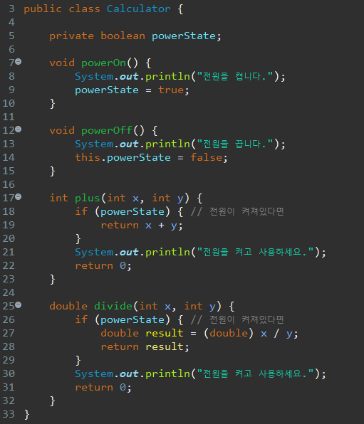 또한 메소드는 반드시 클래스 내/외부의 호출에 의해서 실행되어진다.