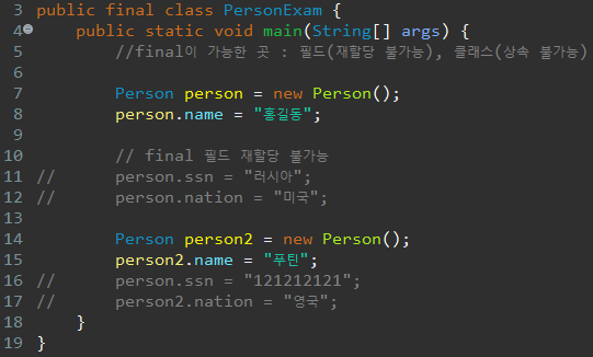 final 필드는 최초 한 번 초기화가 되고나면 값을 변경할 수 없는 필드이다.