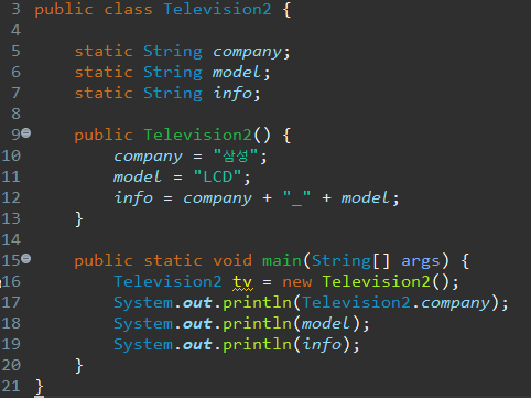 정적 필드는 필드값을 모든 클래스에서 공유하는 고정된 필드이기 때문에 객체를 생성하지 않아도 활용이 가능하고,