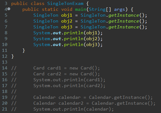 static 필드에서 참조하고 있는 자신의 객체를 리턴한다.