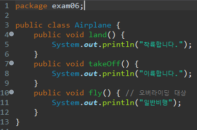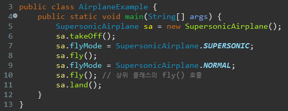 위의 코드에서는 Airplane이 상위 객체, SupersonicAirplane이 하위 객체인데,