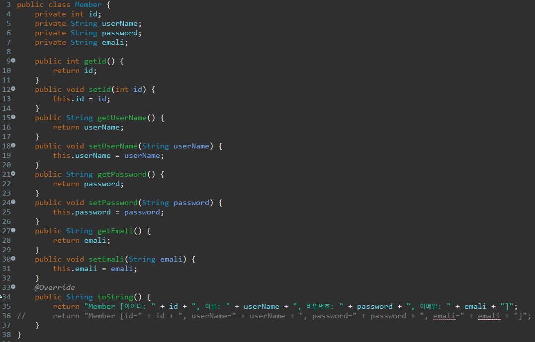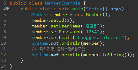 참고로 toString() 메소드는 객체의 필드 정보를 출력하는데 사용되는 메소드이다