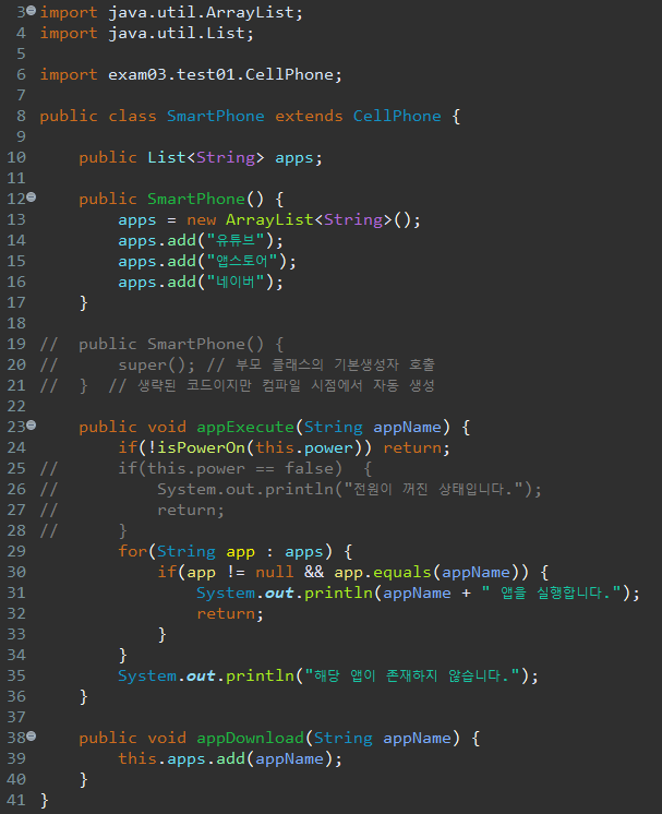 다음으로 패키지를 새로 생성해 Cellphone 클래스를 상속하는 SmartPhone 클래스를 생성하여