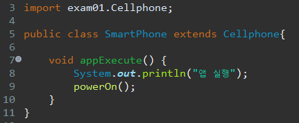 그렇기 때문에 상속하고있는 Smartphone 클래스에서는 기능을 사용할 수 있지만