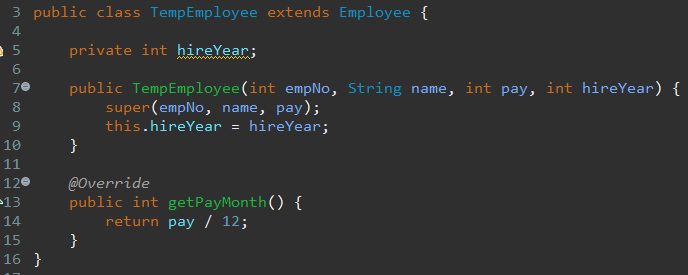하위 클래스에서 오버라이딩하여 메인메소드에서 호출해야하는 getPayMonth() 메소드를 정의해준다.
