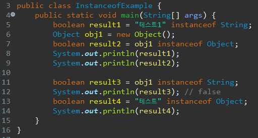 해당 객체가 해당 타입이 맞는지에 대한 결과를 알 수 있다.
