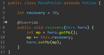 각 하위클래스에서 roll()메소드를 오버라이딩하여 정의한다.