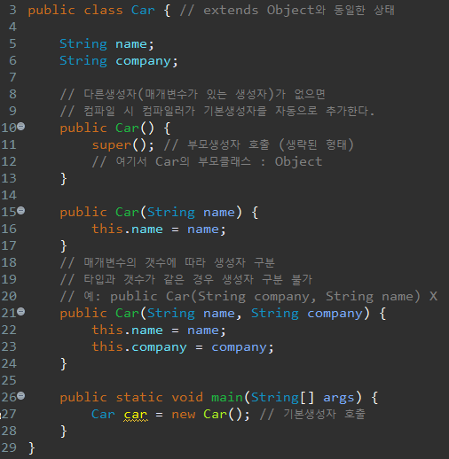 기본적으로 모든 클래스는 기본 생성자에서 Object 클래스의 기본 생성자를 호출하는 것이다.