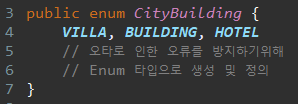 상수들을 enum에 정의해두면 오타를 방지할 수 있고, 코드의 가독성을 높이기 때문에