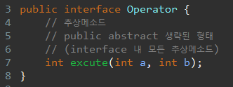 Operator라는 인터페이스(추상클래스)를 만들고, excute라는 추상메소드를 정의해주고,