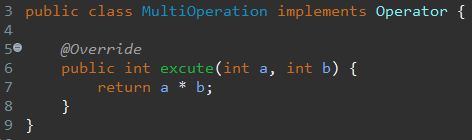 Operator를 구현하고, excute 메소드를 오버라이딩하는 AddOperation, MultiOperaion 클래스를 생성하였다.