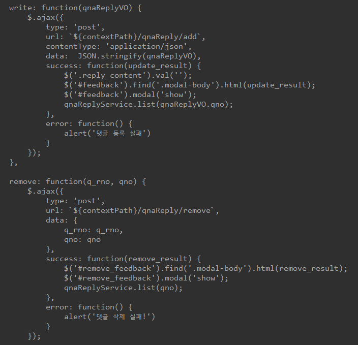 update_result, remove_result를 modal창에서 출력하는 코드이다.