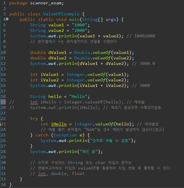 '데이터타입.valueOf(변수명)'를 활용하면 숫자로 구성된 String 또는 char 타입의 문자를