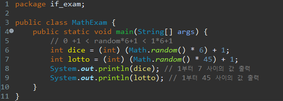 산술연산을 통해 원하는 범위를 지정하여 int 타입으로 변환해주면 로또 번호 생성 등의 활용도 가능하다.