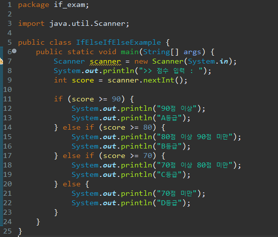 if~else if~else문에서는 if~else문보다 좀 더 세분화하여 조건과 실행을 수행할 수 있는데,