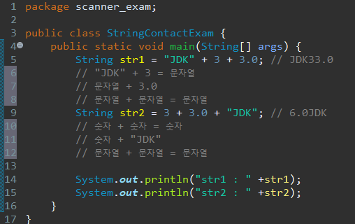 (int 타입과 String 타입이 만나면 int 타입의 값이 String 타입으로 변환된다!)