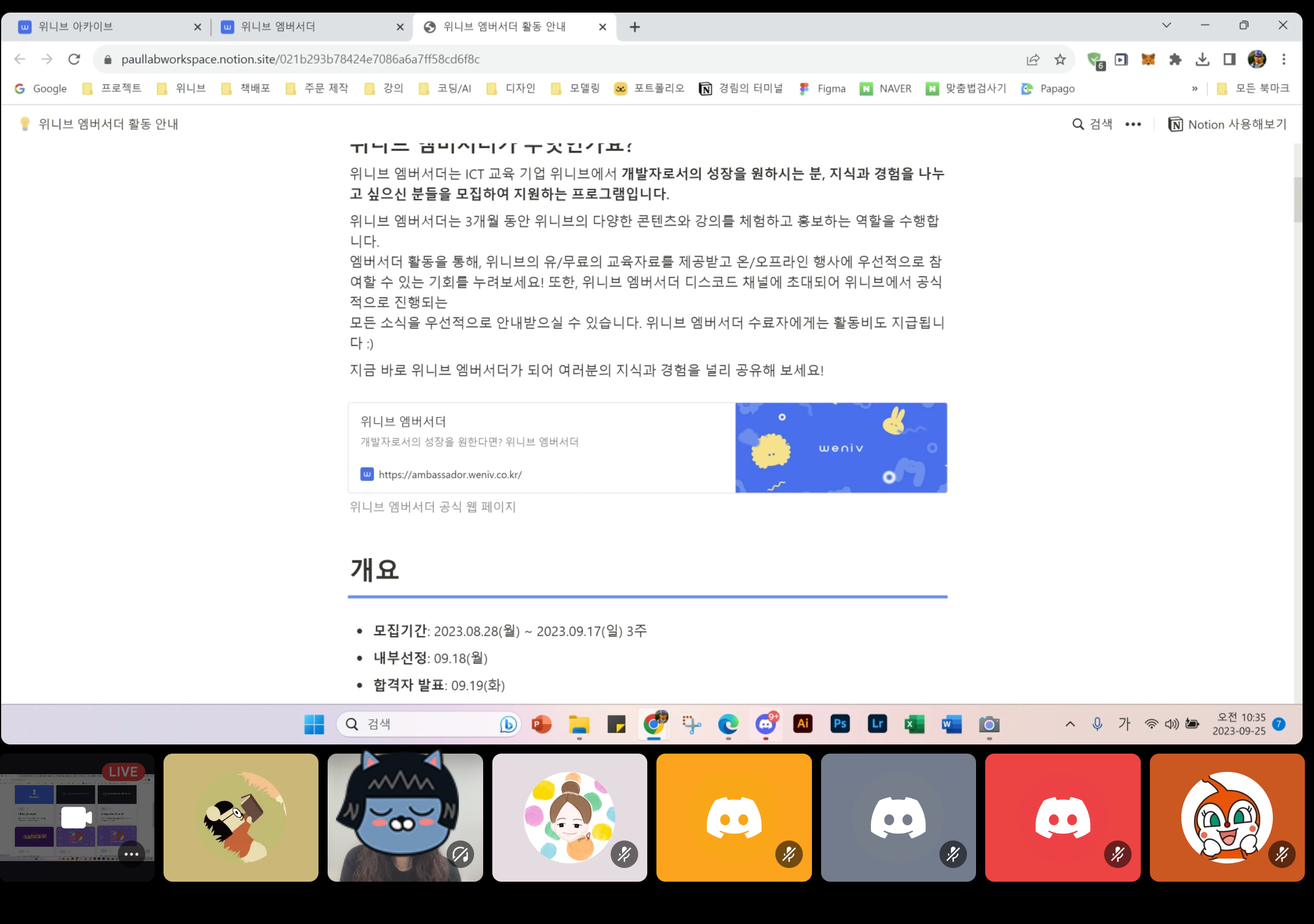 디스코드 위니브 엠버서더 채널을 통해 진행되고 있는데요☺️