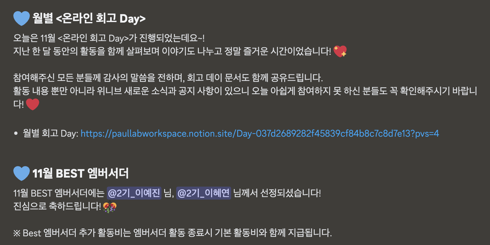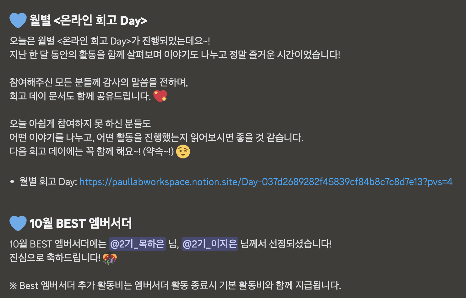 매월 활동 보고가 끝나고 나면 온라인 회고 데이를 진행하였는데요!